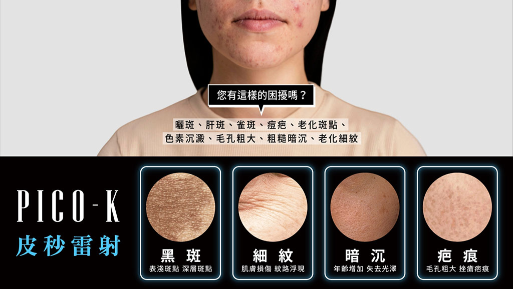 皮秒雷射最著名的是他的淨膚效果,除了淨膚之外,皮秒雷射更可以改善其它肌膚的問題,如下: