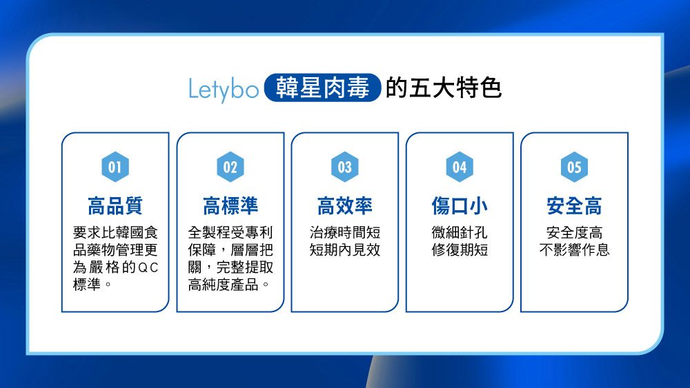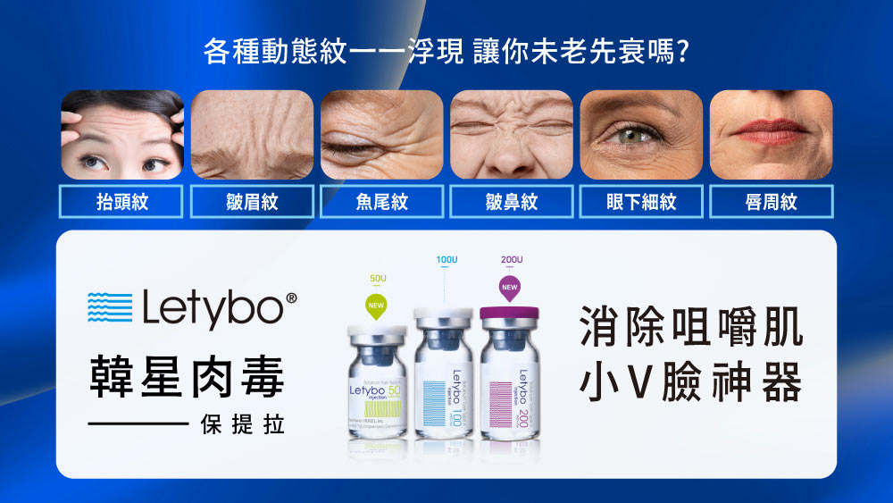 想要小V臉,推薦韓國是佔第一【Letybo保提拉肉毒】Letybo保提拉肉毒是由韓國研發推出的肉毒品牌.在韓國已達到市佔率第一的規模,是許多愛美人士的首選,因此也被稱為是「韓星肉毒」,由於是韓國研發,故是針對亞洲人的肌肉結構設計,副作用少,價格也相較於傳統的美國肉毒、英國肉毒親民,對於第一次施打肉毒的人來說CP值高,是相對適合的入門款喔!