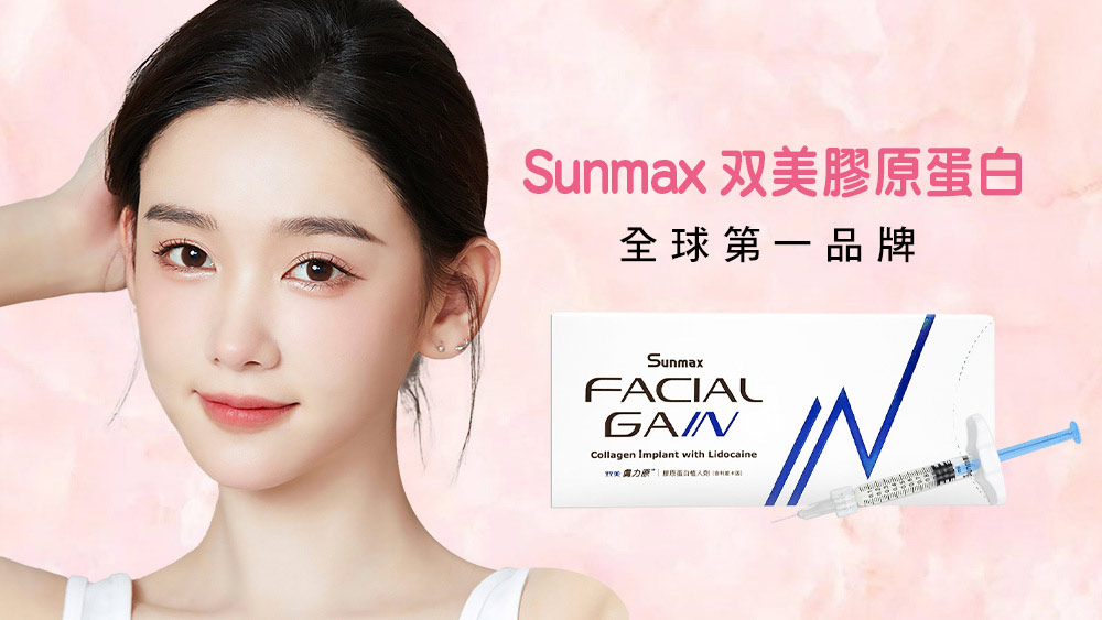 “双美” 膚力原膠原蛋白植入劑(含利度卡因)Sunmax FACIALGAIN Collagen Implant with Lidocaine 衛署醫器輸字第002164號。