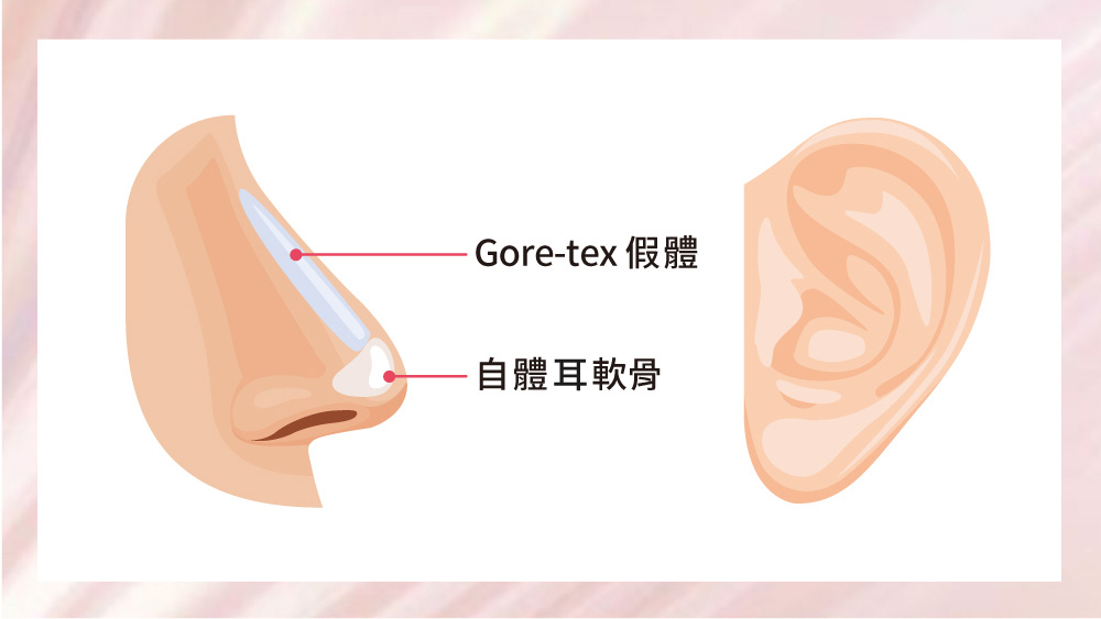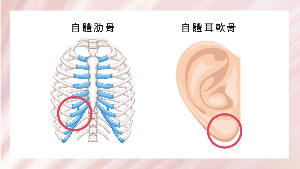 手術常採用患者的「鼻中隔軟骨」、「耳軟骨」或「肋軟骨」作為材料,根據不同需求進行選擇:
