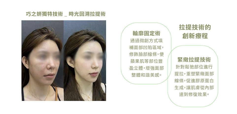 「時光回溯拉提術」的獨特之處在於,它並非單一的治療方式,而是結合了輪廓固定術與緊緻拉提技術的創新療程。這兩者的搭配能夠針對不同的肌膚老化問題進行全方位的改善。