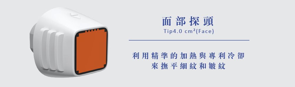 專為臉部肌膚設計的4.0cm²探頭,你有這些困擾嗎?✓臉部鬆弛 ✓皺紋 ✓下巴 ✓線條鬆垮 ✓頸紋 ✓細紋;緊塑臉部肌膚&下巴輪廓,緊緻又立體,重現年輕緊實線條。