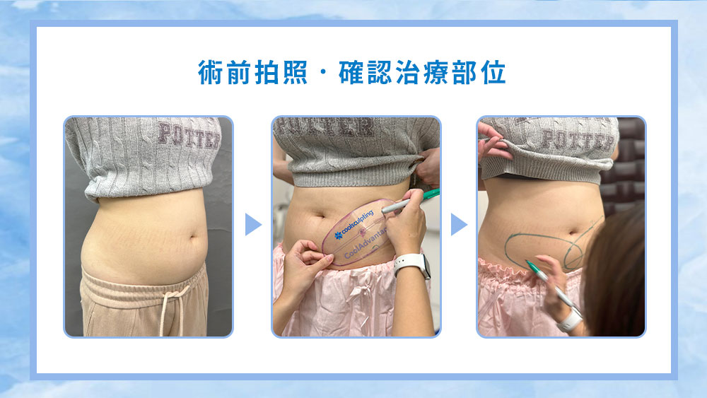 CoolSculpting 酷塑冷凍減脂在治療前,會先由專業醫師評估施作位置,與瞄線確認探頭放置部位。