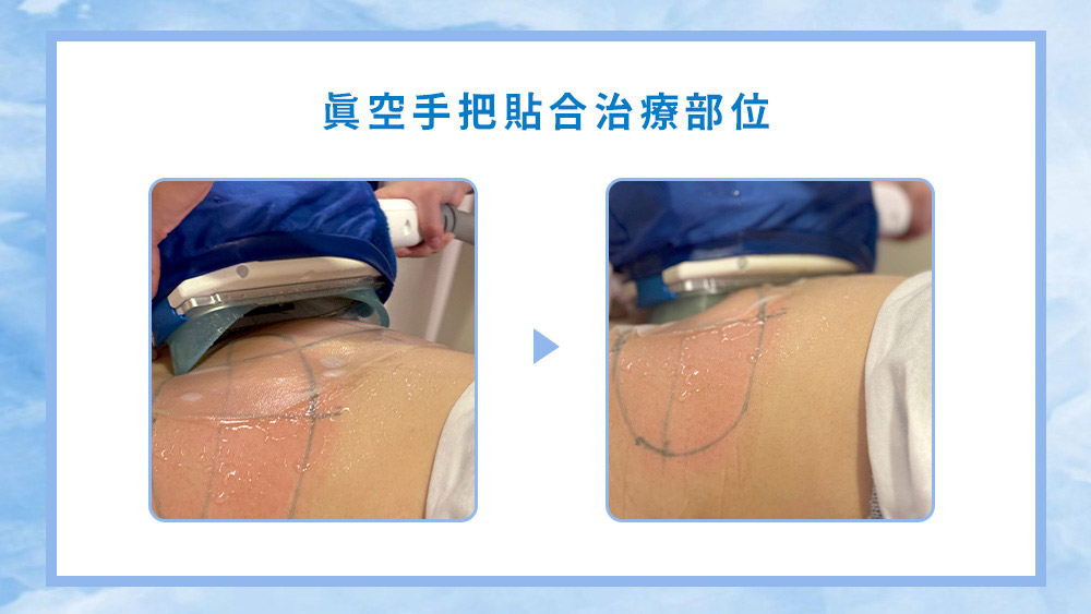 CoolSculpting 酷塑冷凍減脂的真空結束後,會由美容師按摩治療的部位,柔開冷凍後的脂肪,讓冷凍的脂肪平均擴散,幫助代謝!