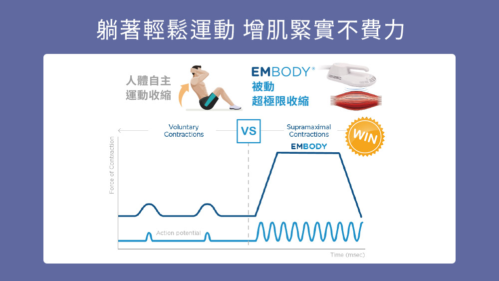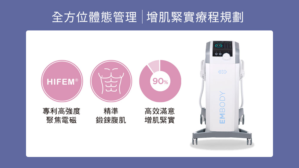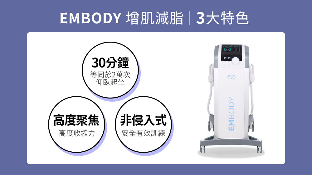EMBODY增肌減脂與CMslim增肌減脂(先舒立)一樣是先進的電磁場肌肉鍛鍊器。EMBODY增肌減脂的原理,是以專利高強度聚焦電磁技術,精準觸擊運動神經元,達到超極限收縮與肌肉鍛鍊,增肌緊實快速,可訓練馬甲線與六塊肌!